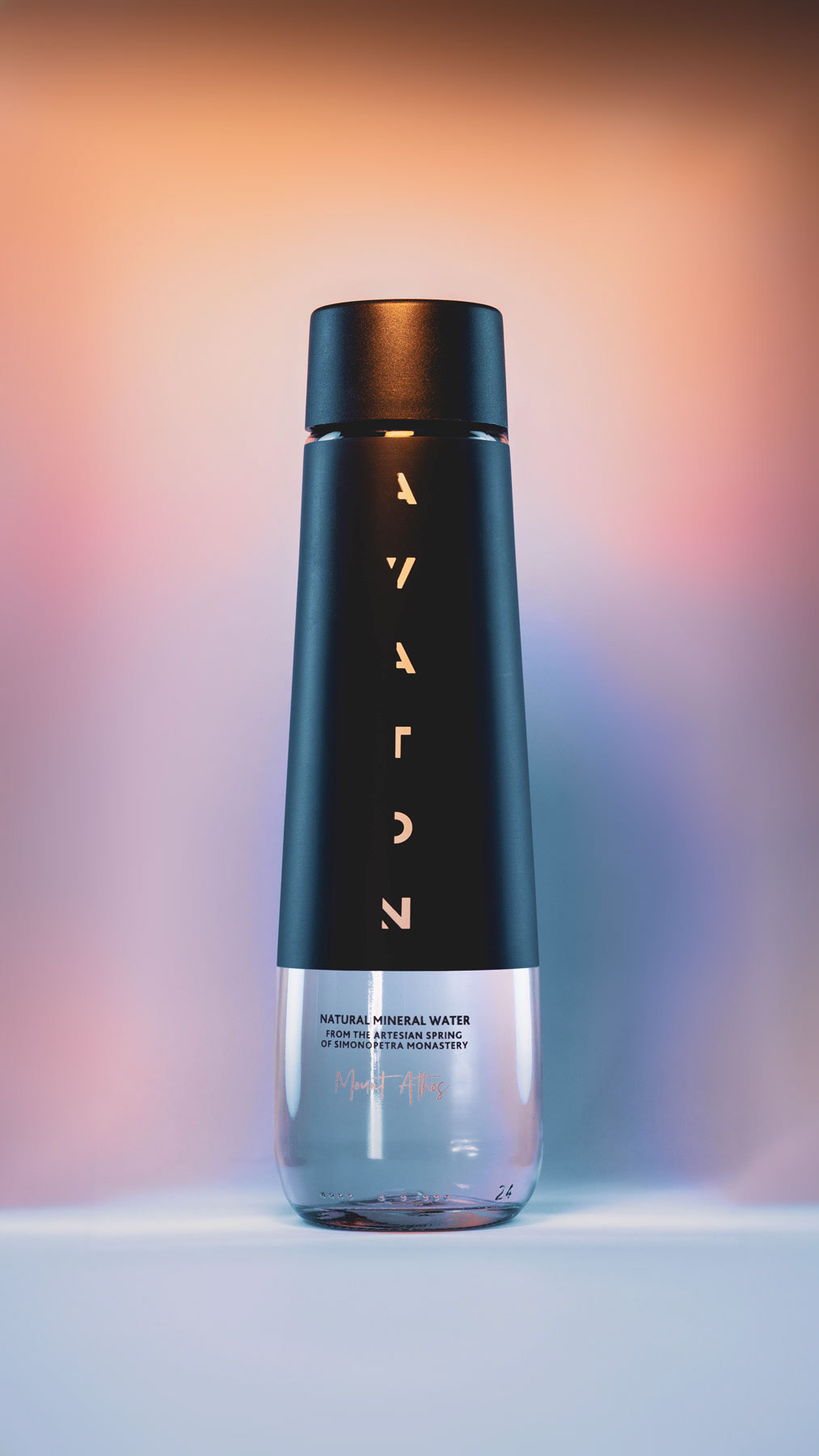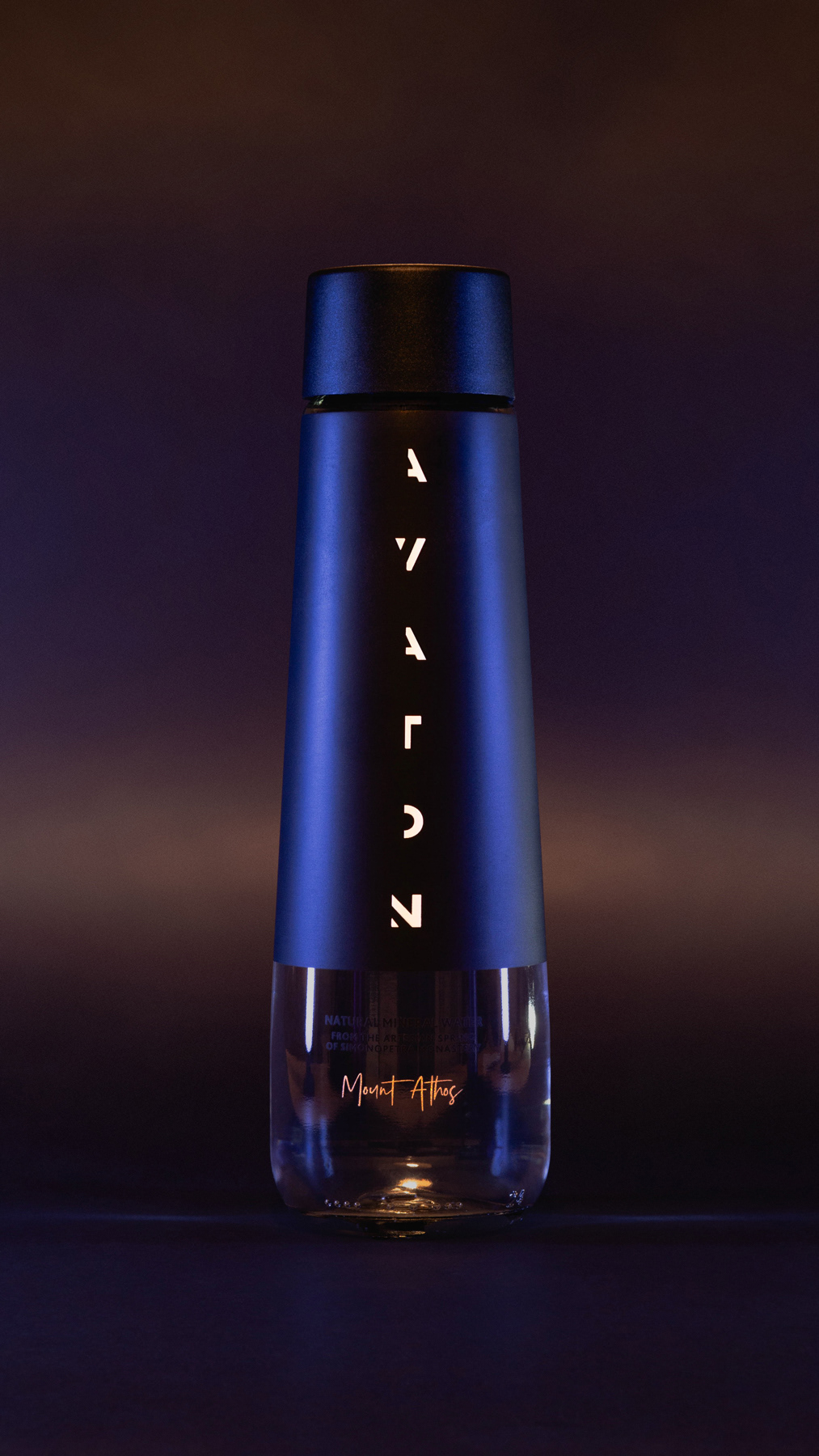 We did: Self-initiated product shoot for Avaton, a premium natural mineral water sourced from the artesian spring of Simonopetra Monastery in Mount Athos, Greece. The project included a full studio photography session and a short-form video reel for Instagram. The session explored multiple lighting setups and color temperatures — from deep moody blues and warm amber gradients to clean backlit studio shots — to highlight the bottle's distinctive tapered silhouette and matte-to-glass transition. We handled creative direction, lighting design, shooting, video editing, and full post-production.