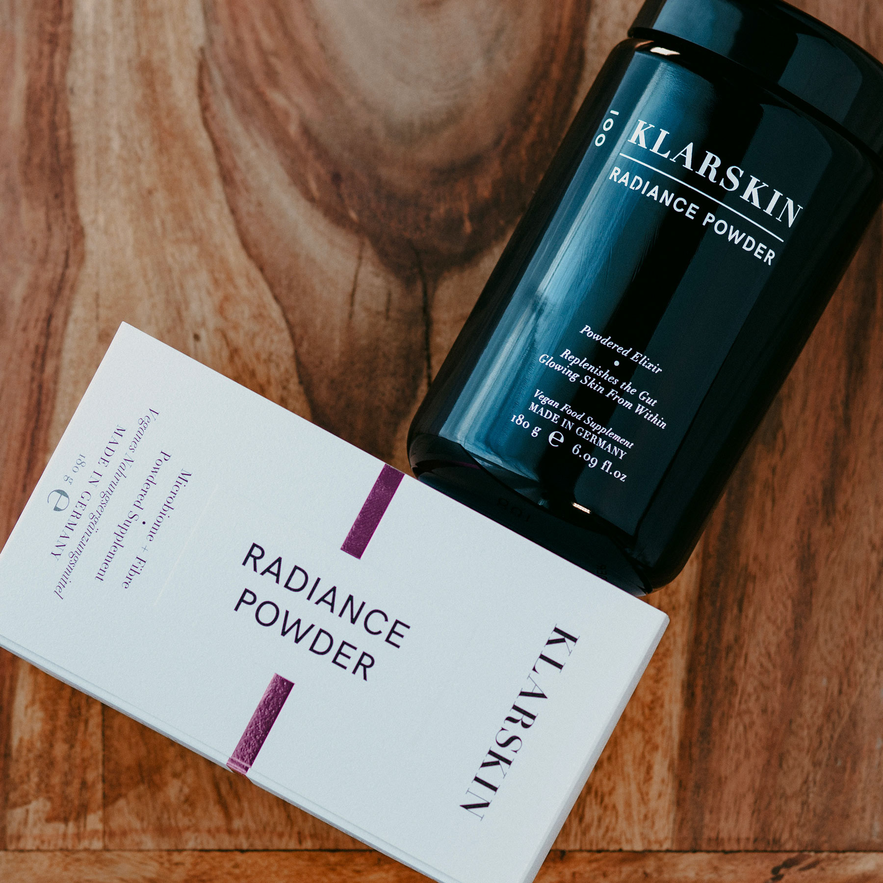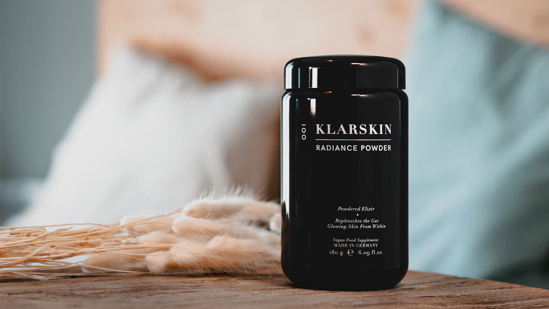 We did: Self-initiated product shoot for Klarskin Radiance Powder, a vegan gut-health supplement made in Germany. The project included a full lifestyle photography session and two short-form videos designed for Instagram. We handled everything end to end: creative direction, set styling, photography, video production, editing, and color grading. The visual approach paired the product's dark, minimal packaging against warm natural textures — raw wood, linen, dried botanicals — to reinforce the brand's clean-beauty positioning.